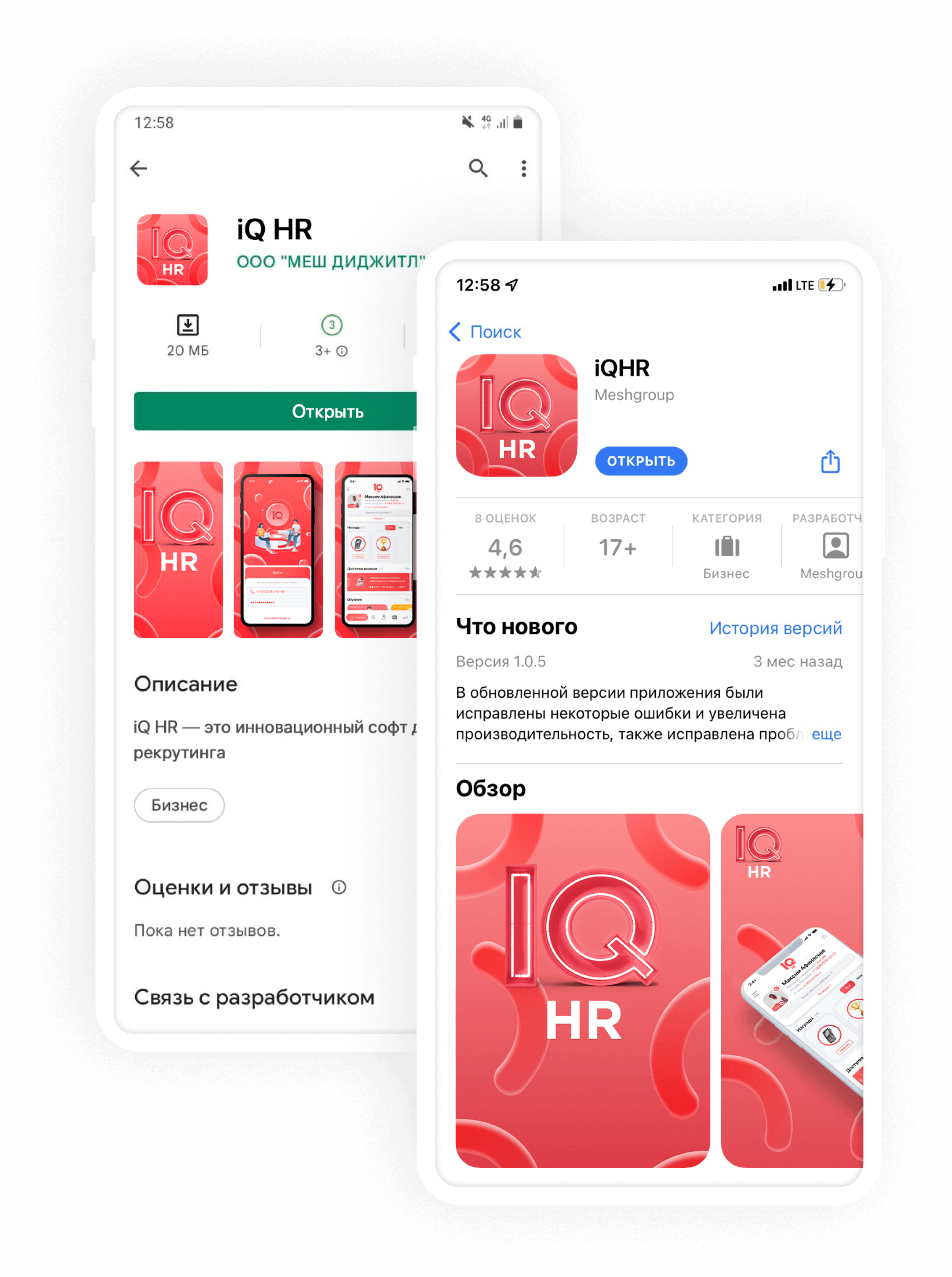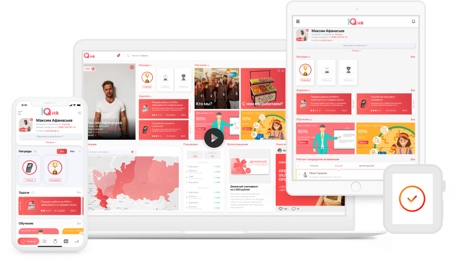 Коробочное решение IQ HR устанавливается руководителю и его сотрудникам на всех необходимых платформах — web, адаптив, мобильное приложение (IOS / Android). Платформа легко интегрируется с существующими CRM-системами (SAAS, ERP) либо с собственной CRM компании. Интеграция от 7 до 30 дней, также приложение может работать автономно.