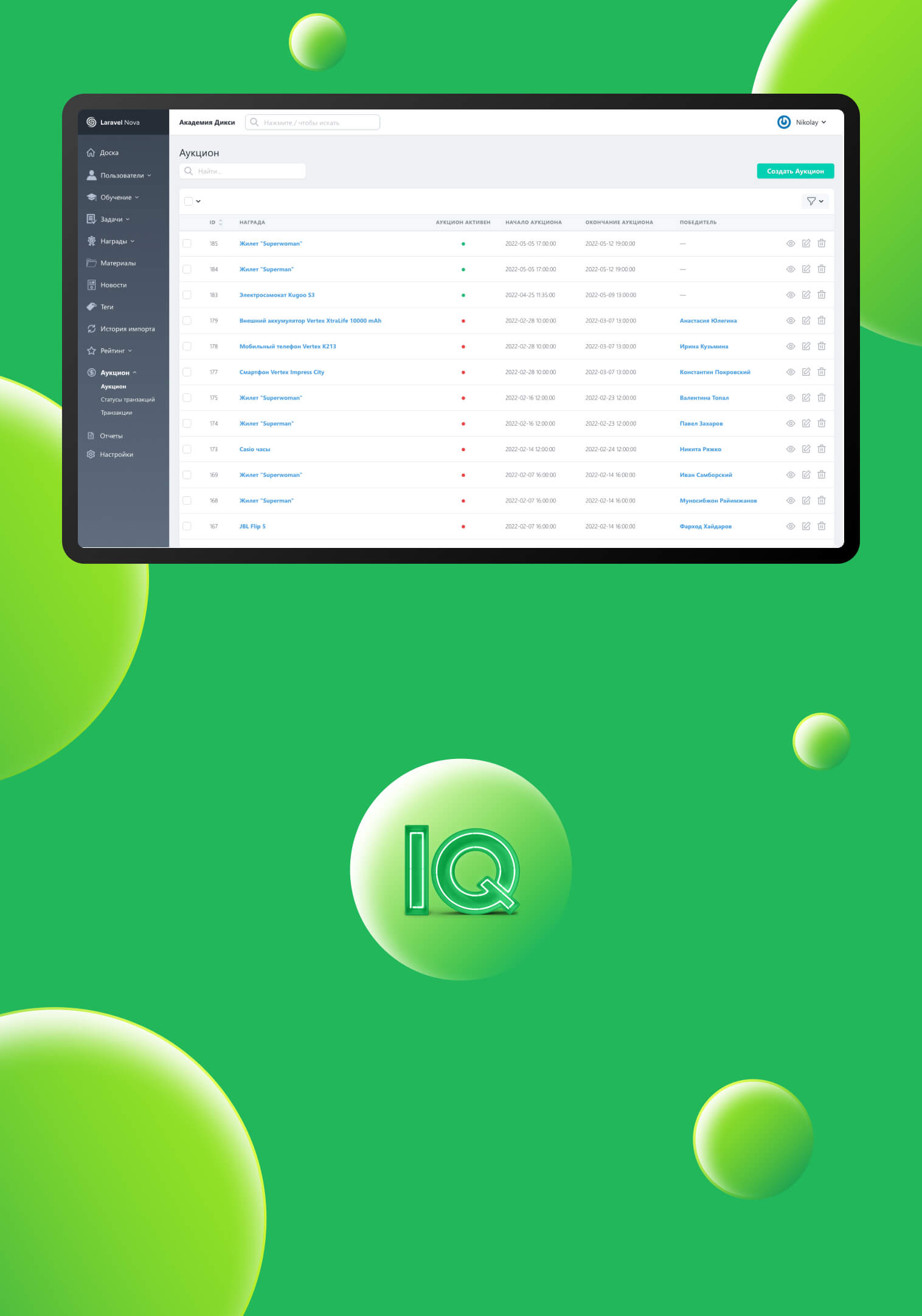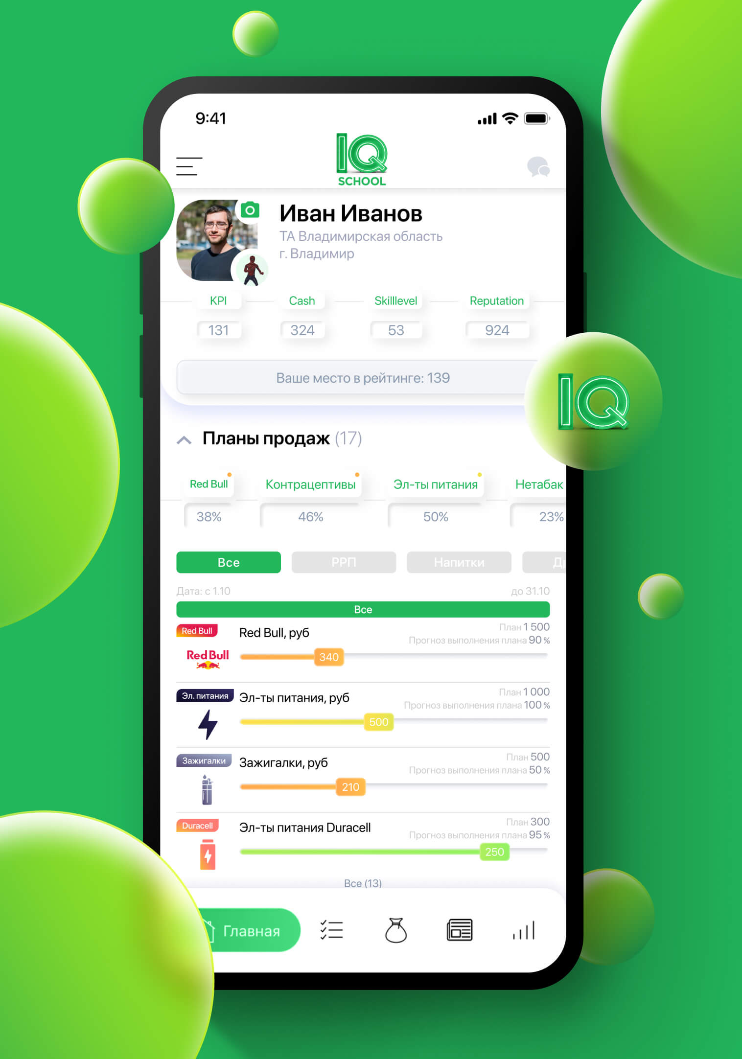 IQ School — единая платформа для обучения продажам сотрудников крупных корпораций и повышения мотивации. IQ School — это больше, чем LMS, софт даёт возможность внедрять и контролировать понятные KPI и планы продаж, отслеживая успехи каждого сотрудника, формируя развёрнутую статистику и рейтинги, повышая вовлечённость через геймификацию и снижая текучку кадров.